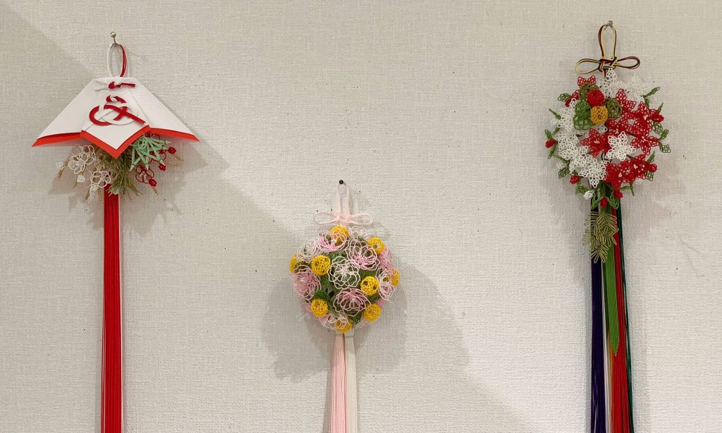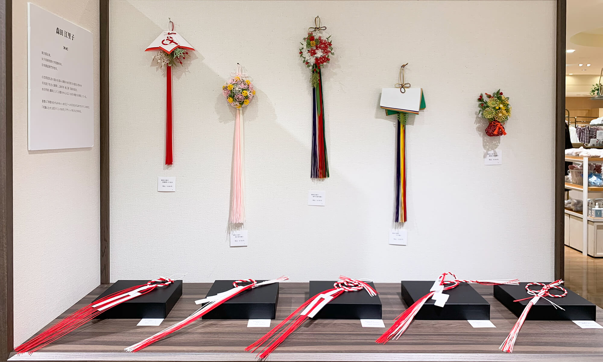 森田江里子は、節句飾りや正月飾りなどの水引作品を展示しました。