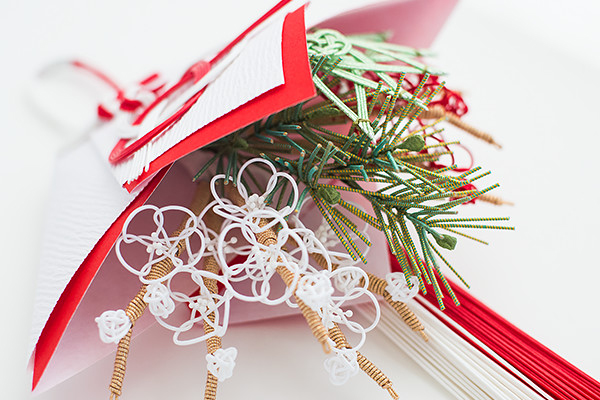 森田江里子は、この伝統的な有職造花の形式を、水引の結びによって現代的に再構成しました。