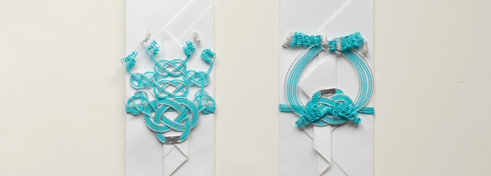 古くから伝わるケルト文様には、なぜか水引の基本結びである“あわび結び”とそっくりな形が描かれています。1本の線が「結び」によって変容することで立ち現れるかたち。そこに宿る無限と神秘のイメージには、古代と現代の隔たり、西と東の隔たりも軽々と超えていく力があります。